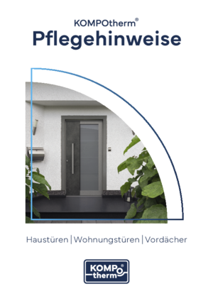 Sie haben ein hochwertiges Qualitätsprodukt aus dem Hause KOMPOtherm® erworben. Unsere Produkte werden auf höchstem Qualitätsniveau gefertigt, das eine erstklassige Verarbeitung und Qualität garantiert. Welche Maßnahmen wir für die Wartung und Pflege von Haustüren, Wohnungseingangstüren und Vordächern empfehlen, haben wir in einer übersichtlichen PDF-Broschüre für Sie zusammengetragen.