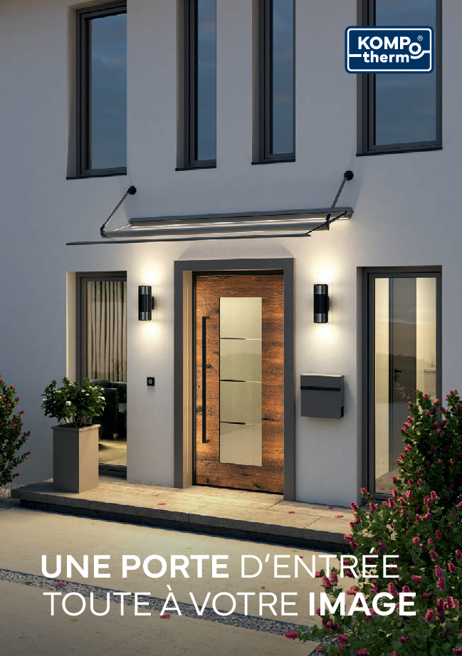 Modernisez votre entrée avec une porte KOMPOtherm®. Votre revendeur KOMPOtherm® vous montrera réellement ce que nous ne vous montrons qu'en image.